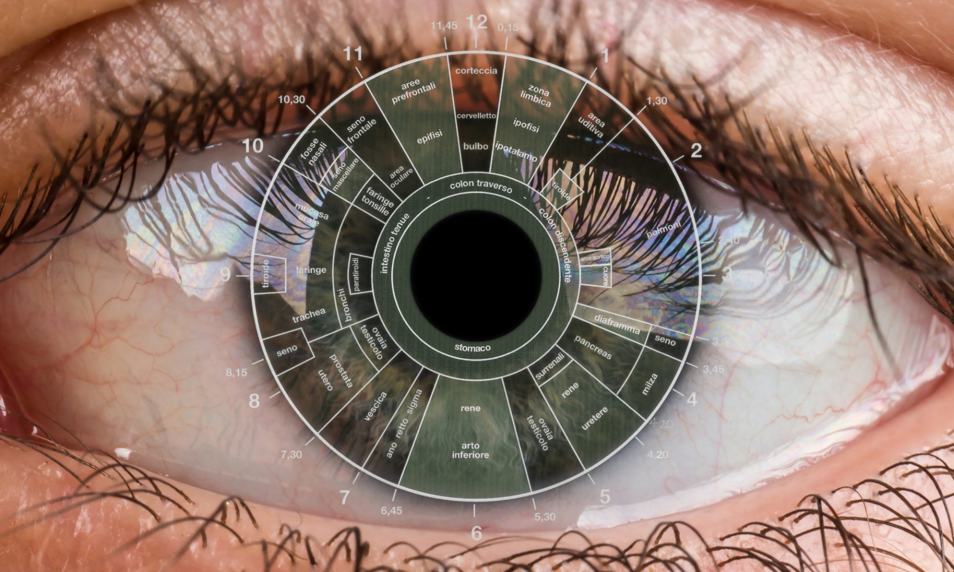 L'occhio riflette le informazioni sullo stato PSICOFISICO del nostro corpo attraverso varie forme che ritroviamo sulla superficie dell'Iride, come delle colorazioni innaturali, cripte (lesioni, lacune), raggi (solchi radiali, raggi solari), macchie di pigmento... ecc.